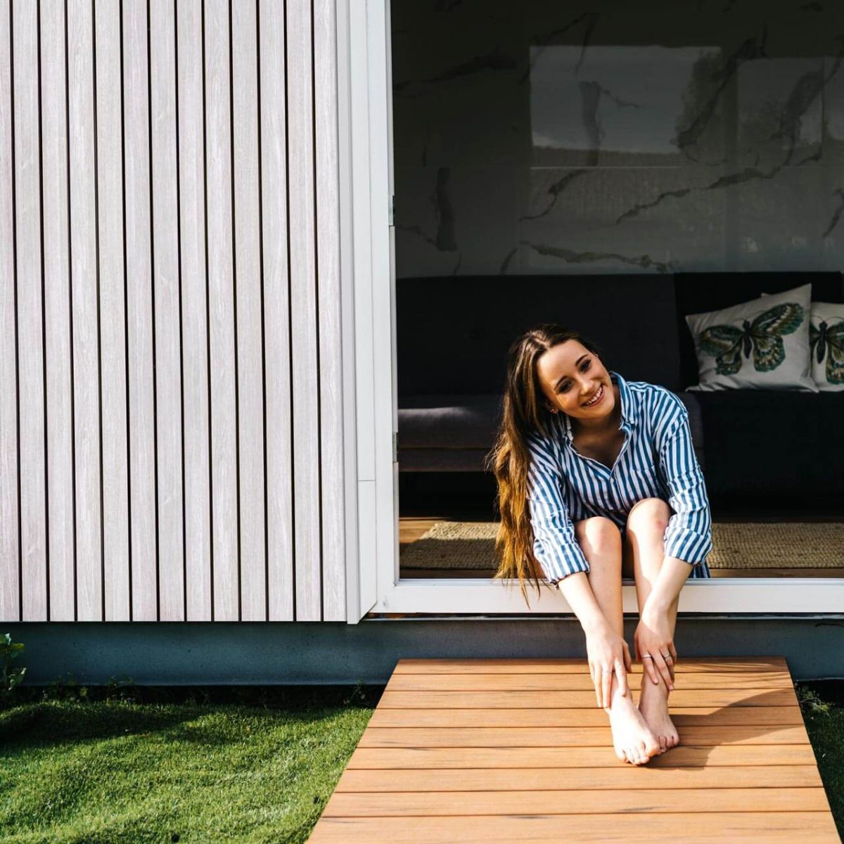 Komorová štruktúra profilu dosky ju robí mimoriadne pevnou a stabilnou; montáž pomocou systému PERO-DRÁŽKA je rýchla a jednoduchá, dosky sa pripevňujú ku konštrukcii pomocou skrutiek vo VERTIKÁLNOM alebo HORIZONTÁLNOM usporiadaní; Maximálna dĺžka profilov je až 6 m. Profily sú potiahnuté UV odolnou konštrukčnou fóliou, sú vyrobené zo 100 % recyklovaných plastov a majú certifikát EPD/FDES, čo znamená, že majú extrémne nízku uhlíkovú stopu v porovnaní napríklad s impregnovaným drevom alebo kovovým obkladom.