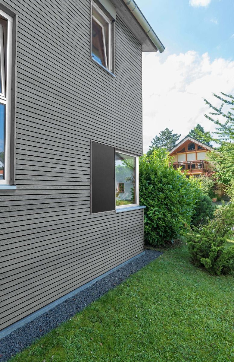 Fasádny obklad vinyPlus Quattro - masívne, veľmi pevné a odolné, bezúdržbové fasádne obklady. Majú moderný "rombusový" vzhľad s tmavou medzerou. Obklady vinyPlus Quattro majú mimoriadne širokú kryciu plochu 299 mm a dĺžku 6 m a sú tak ideálne na rýchlu inštaláciu veľkých plôch. Inštalujú sa buď vertikálne, alebo horizontálne.