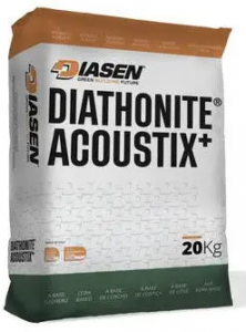 Predmiešaná omietka na realizáciu stien a stropov, ktorá absorbuje hluk. Diathonite Acoustix+ je šetrný k životnému prostrediu, vyrobený z prírodných surovín ako sú korok (0-3 mm/0-0,12 zrnitosti), pemza, kremeliny, hydraulické vápno a prírodné vlákna. Zaisťuje vysokú úroveň akustickej absorpcie s certifikovaným koeficientom redukcie hluku (NRC) 0,75 . /Priemer medzi frekvenciami 250 Hz, 500 Hz, 1 000 Hz a 2 000 Hz, ktorý popisuje schopnosť materiálu pohlcovať zvuk/.Makroporézna štruktúra s vysokým obsahom vzduchu, ktorá zaručuje vynikajúce akustické izolačné vlastnosti. Vďaka správnej zmesi surovín sa dosahuje vysoký tepelnoizolačný výkon - λ = 0,075 W/mK. Vysoká paropriepustnosť je dôkazom pórovitosti, ktorá posilňuje akustický výkon -μ = 4. Vysoká pevnosť v tlaku schopná dodať stene väčšiu konzistenciu a stabilitu - 2,8 N/mm² .Okrem toho je na konci životného cyklu recyklovateľný. Zaradená do triedy A1 podľa UNI EN ISO 13501-1 - TRIEDA A1. Žiadna tvorba plameňa a žiadne emisie dymu.Vďaka lepšej absorbcií zvuku, DiathoniteAcoustix+ eliminuje dozvuky a znižuje odrážané ozveny. Omietka má vysokú priedušnosť, dobrú tepelnú izoláciu, odvlhčovaciu kapacitu a výbornú reakcia na oheň. Pórovitosť, ktorá charakterizuje štruktúru a prítomnosť prírodného hydraulického vápna robí omietku tiež bakteriostatickou a protiplesňovou.